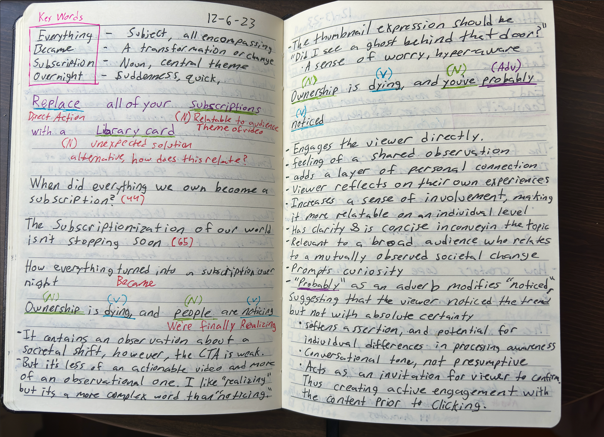 To the right are my notes on how I go through my titling process. Watch me speak more about the making of the channel, below.